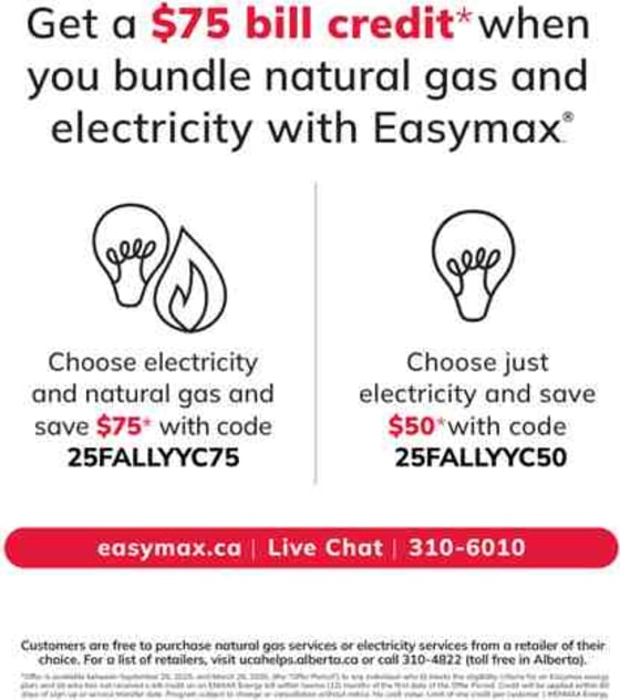 Get competitive electricity, natural gas and solar* options^ for your home or small business through Easymax® by ENMAX Energy. We offer the flexibility to choose energy plans for electricity and natural gas to suit your needs, mixing and matching to get a bundle that works best for you. Our Alberta-based customer care team is right where Easymax customers are.* Solar PV products and services brought to you by ENMAX Energy Corporation and its subsidiaries and affiliates, including ENMAX Generation Portfolio Inc. and a network of local installers across Alberta.